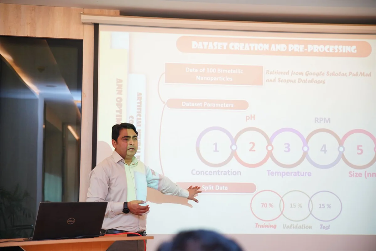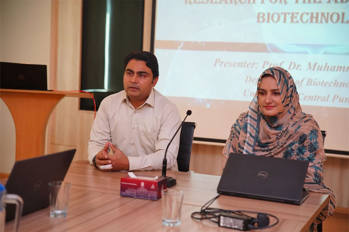 An interactive session on “Artificial Intelligence-Driven Smart Research for the Advancement of Biotechnology” was organized by the Department of Biotechnology. Prof. Dr. Muhammad Naveed shared his expertise on the integration of AI in biotechnology, emphasizing its role in gene editing, data analysis, and innovative research. The session concluded with an engaging discussion among students and faculty.