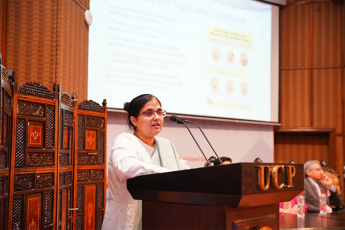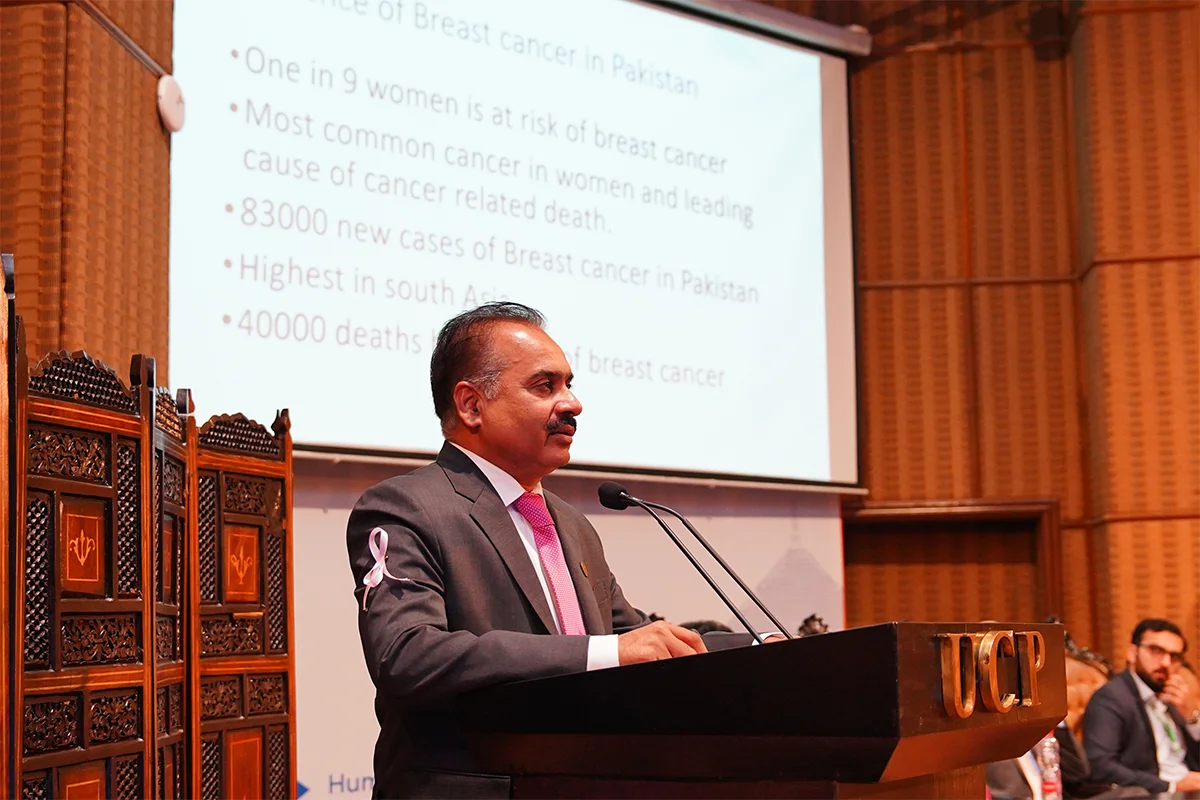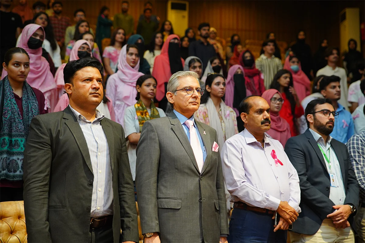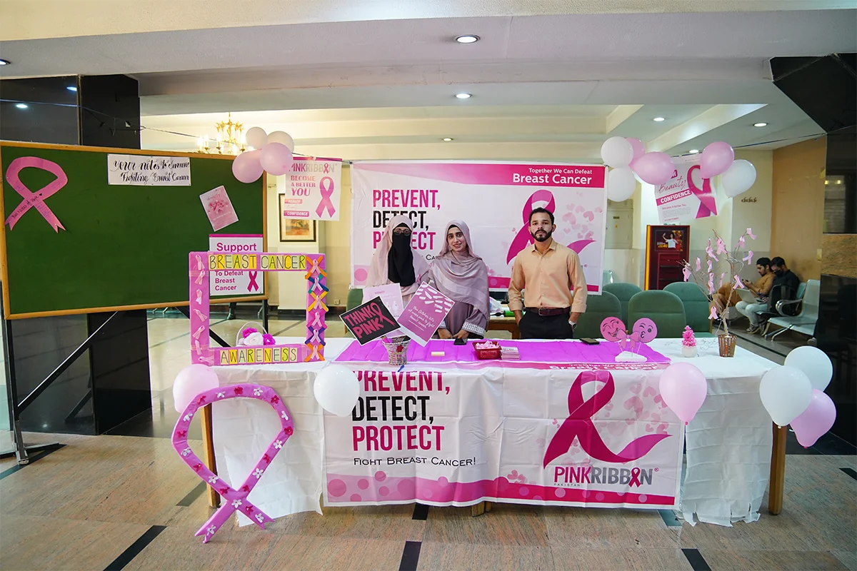Department of Microbiology, in collaboration with the Human Resource Department, organized a Breast Cancer Awareness Seminar, in partnership with Al Nasar Lab and Pink Ribbon Pakistan. The event featured esteemed speakers including Mr. Omer Aftab (CEO, Pink Ribbon Pakistan), Prof. Dr. Farooq Ahmed Rana (Consultant Surgeon, Jinnah Hospital Lahore), and Prof. Dr. Kausar Bano (Consultant Oncologist, JHL/AIMC Lahore), who shared valuable insights on early detection, treatment, and preventive strategies. Dr. Aatif Amin, Head of the Department of Microbiology, welcomed the guests and emphasized the importance of awareness and timely diagnosis, while the Dean expressed gratitude to the speakers and praised the initiative. The guests appreciated the efforts of organizers Ms. Iqra Jamil and Mr. M. Tahir Ishaq for successfully arranging the seminar, which concluded with an awareness walk symbolizing collective commitment to the fight against breast cancer.