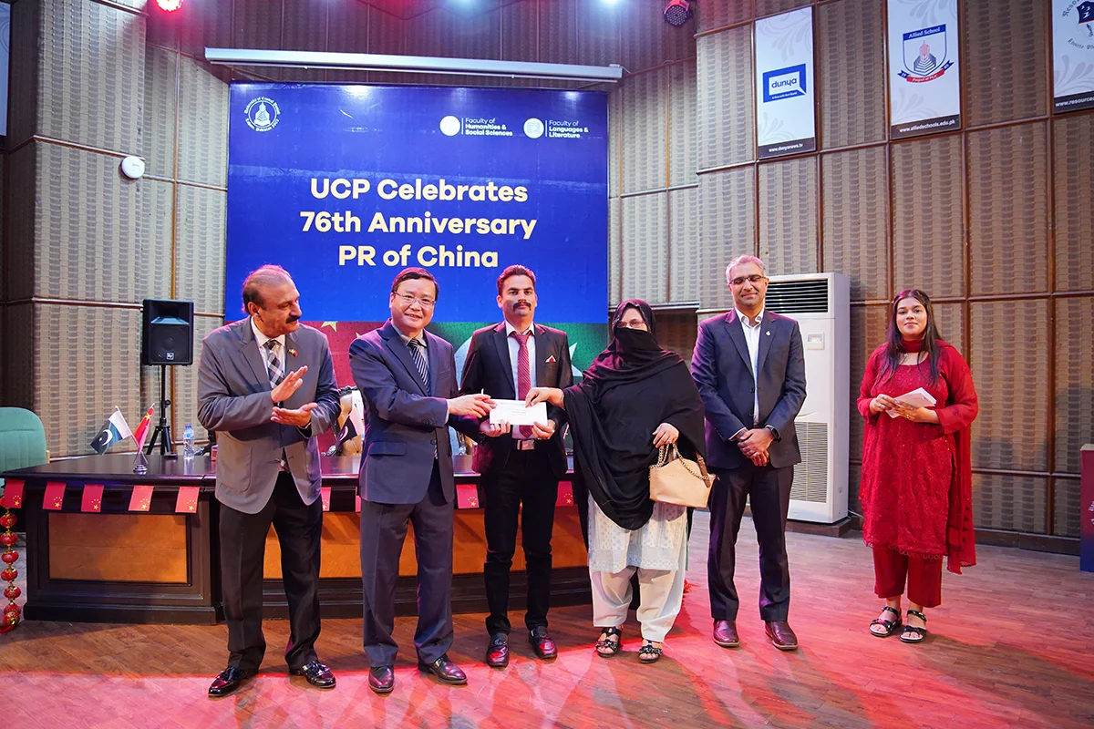 University of Central Punjab celebrated the 76th Anniversary of the People’s Republic of China, hosting H.E. Zhao Shiren, Consul General of the PR China in Lahore, as the Chief Guest. The event featured the Chinese Consul General Scholarships Ceremony, a visit to China Town at the UCP Amphitheater. H.E. Zhao Shiren commended UCP’s efforts in promoting cultural understanding and educational collaboration, reaffirming the enduring friendship between China and Pakistan.