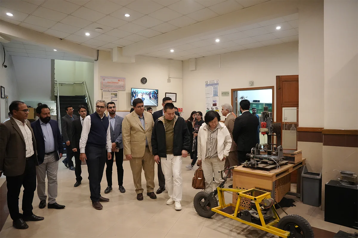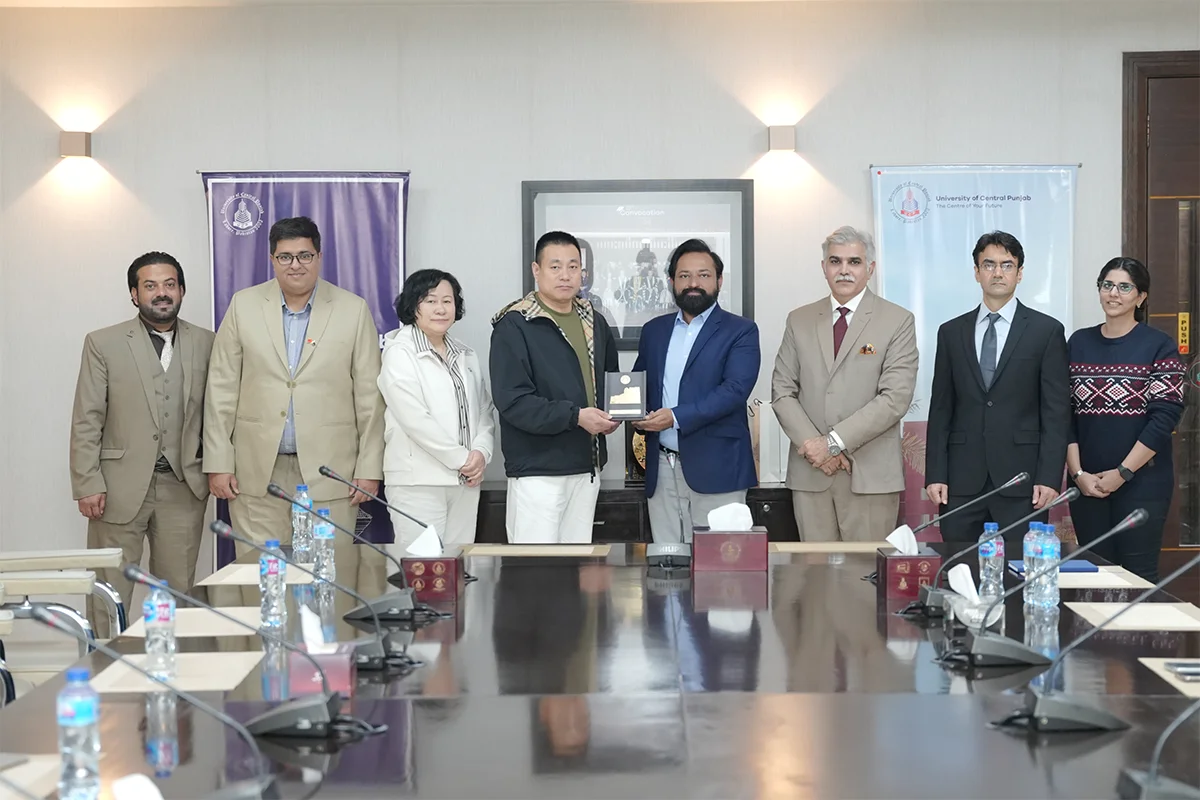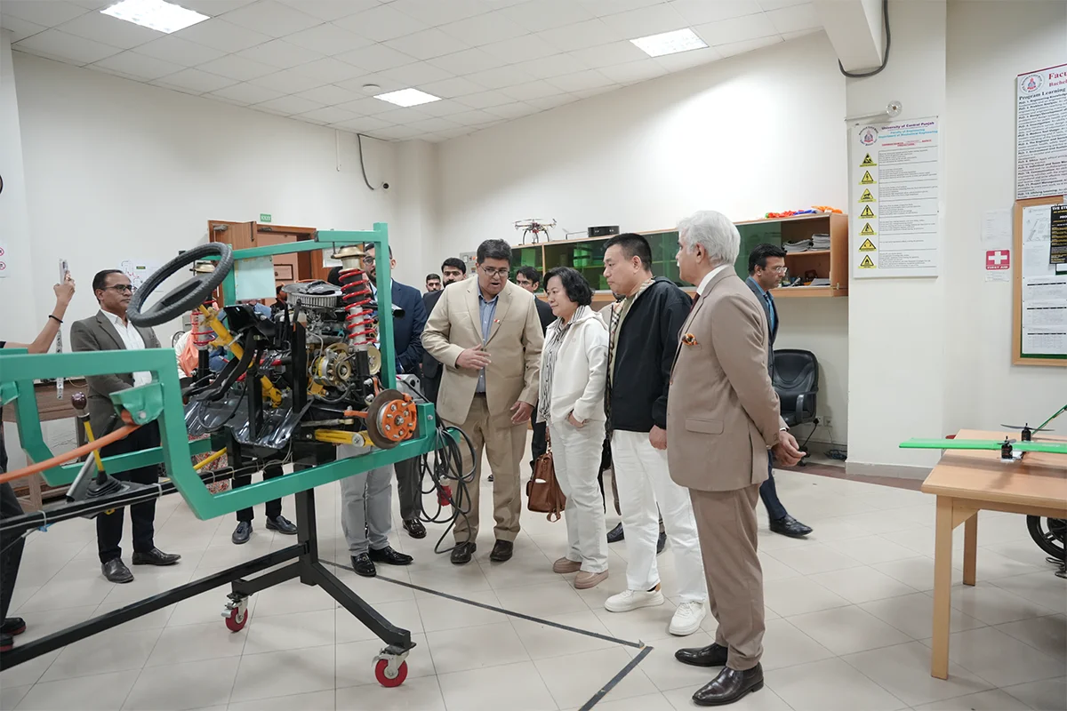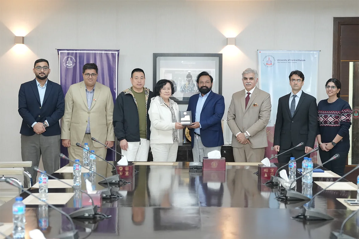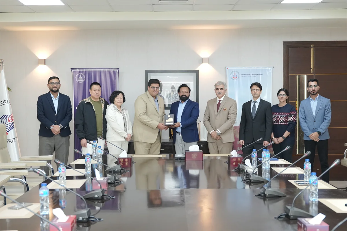 University of Central Punjab (UCP) hosted a delegation from China on December 2, 2025, to explore potential collaboration in electric vehicle (EV) technologies. The visitors were received by senior UCP leadership and attended a briefing session chaired by ProRector Dr. Hammad Naveed, where Dr. Fesal Toosy, HoD Electrical Engineering, presented UCP’s ongoing EV projects and future prospects. The delegation also toured key campus facilities, including engineering labs, Takhleeq pop-up, sports courts, the central library, radio station, and TV production house, showing particular interest in student-led innovations. The visit concluded with the Provost presenting university shields to the guests, acknowledging their engagement and interest in building future partnerships with UCP.