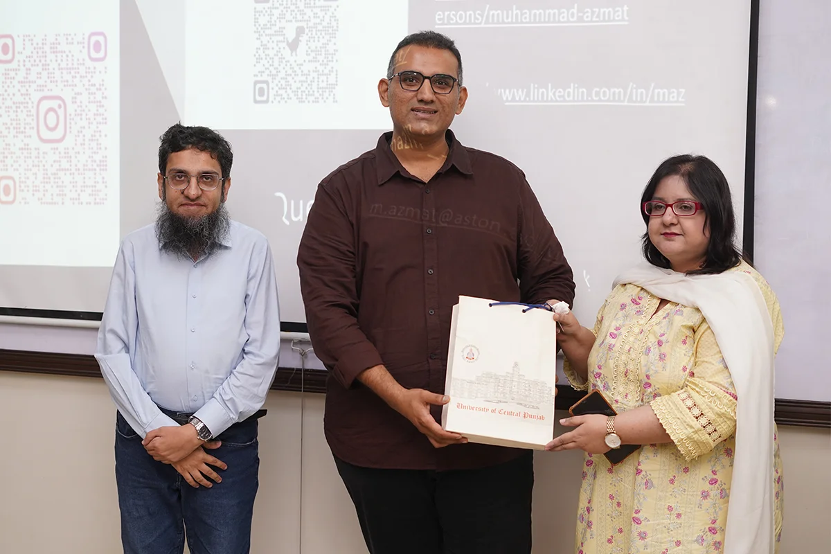 UCP Business School hosted an enlightening guest session with Dr. Muhammad Azmat, Assistant Professor at Aston University, UK, on “Digital & Connected Supply Chains: Paving Pathways to Industry 5.0.” Dr. Azmat discussed how disruptive technologies such as Blockchain, IoT, Autonomous Vehicles, and Drones are revolutionizing supply chain management and driving the transition toward Industry 5.0. The session was attended by Dr. Athar Siddiqui (Dean, FOMS), Ms. Uzma (Patron, Supply Chain Club), Mr. Mustafa Hanan (FILO, FOMS), and numerous enthusiastic supply chain students. UCP Business School extends heartfelt gratitude to Dr. Azmat for his insightful discussion and for inspiring students to explore the future of digital, sustainable, and connected supply chains.