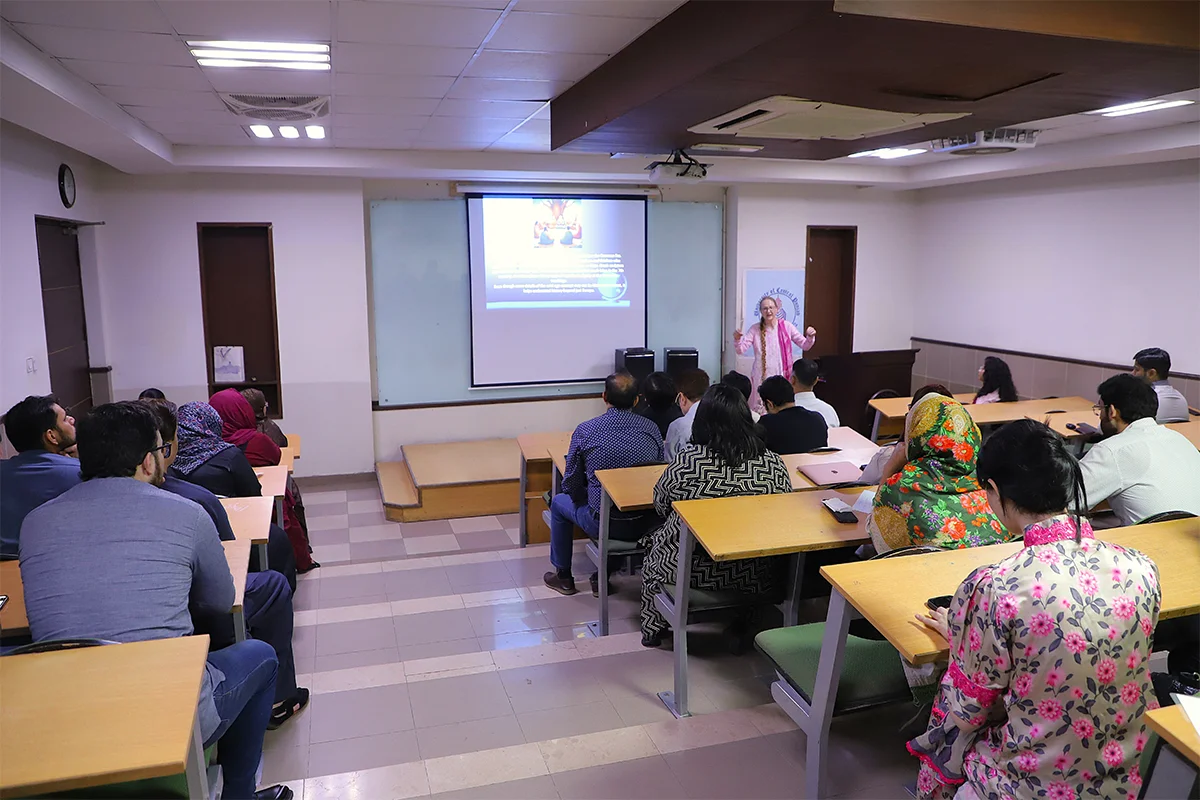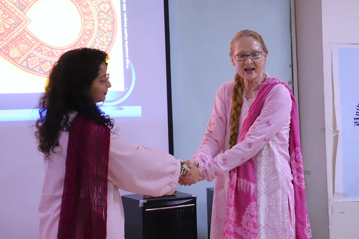 Faculty of Media & Mass Communication, in collaboration with the International Office, hosted Dr. Evelin Gerda Lindner, a renowned German-Norwegian scholar and Founding President of HumanDHS, for an enlightening talk titled “From Humiliation to Dignity: Analysing Media as a Business Model.” Dr. Lindner, a double doctorate and Nobel Peace Prize nominee, explored the significance of communal systems, the consequences of consumerism and discrimination, and the powerful role of media in shaping human dignity. The session concluded with Prof. Dr. Fawad Baig, Dean of FMMC, presenting a UCP souvenir to Dr. Lindner in appreciation of her insightful contribution and inspiring discussion.