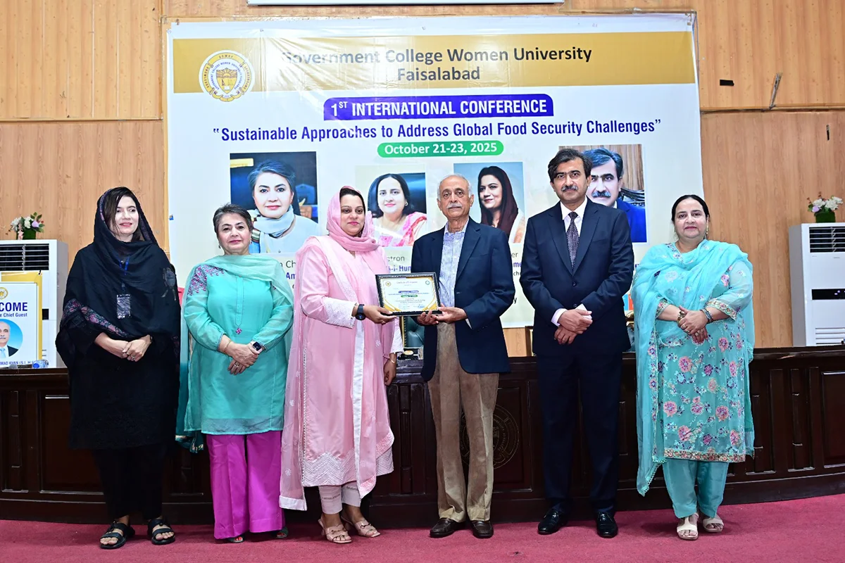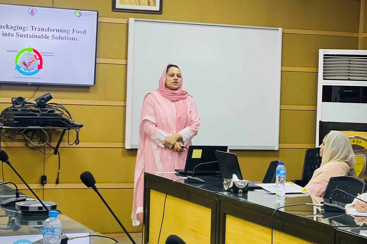 Dr. Kanza Aziz Awan, was invited as a distinguished speaker at the 1st International Conference on Sustainable Approaches to Address Global Food Security Challenges, held at Government College Women University Faisalabad (GCWUF). Delivering a talk on “Edible Packaging: Transforming Food Waste into Sustainable Solutions,” she shared innovative methods to convert food waste into eco-friendly edible packaging, offering sustainable alternatives to plastic and helping reduce post-harvest losses. Her participation underscored UCP’s commitment to sustainability and research-driven innovation in addressing global food security challenges.