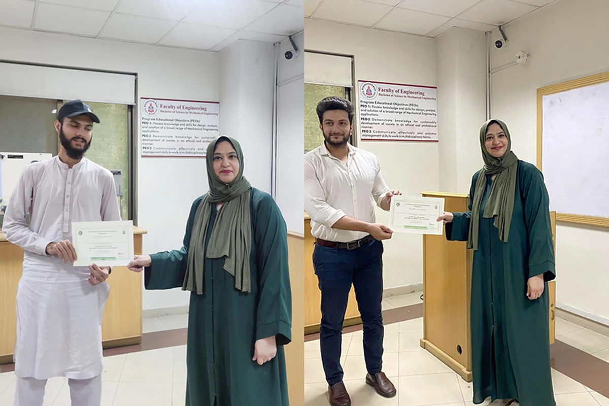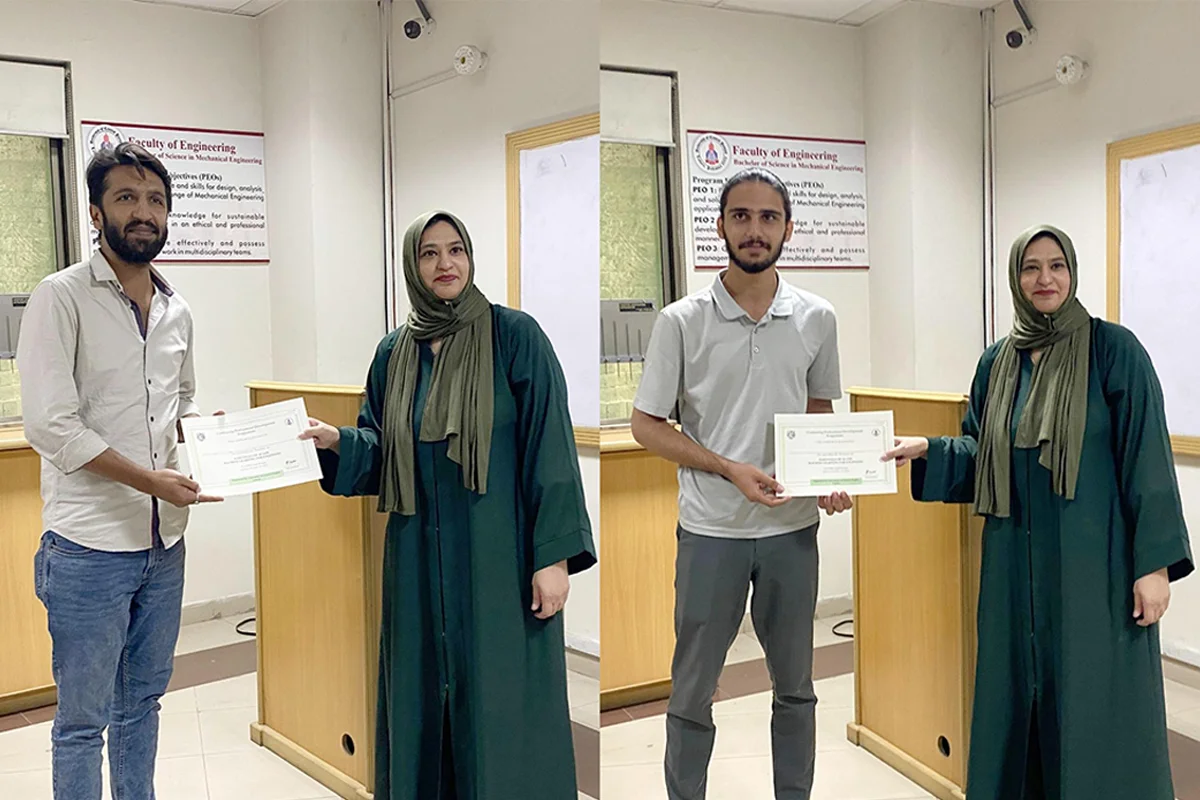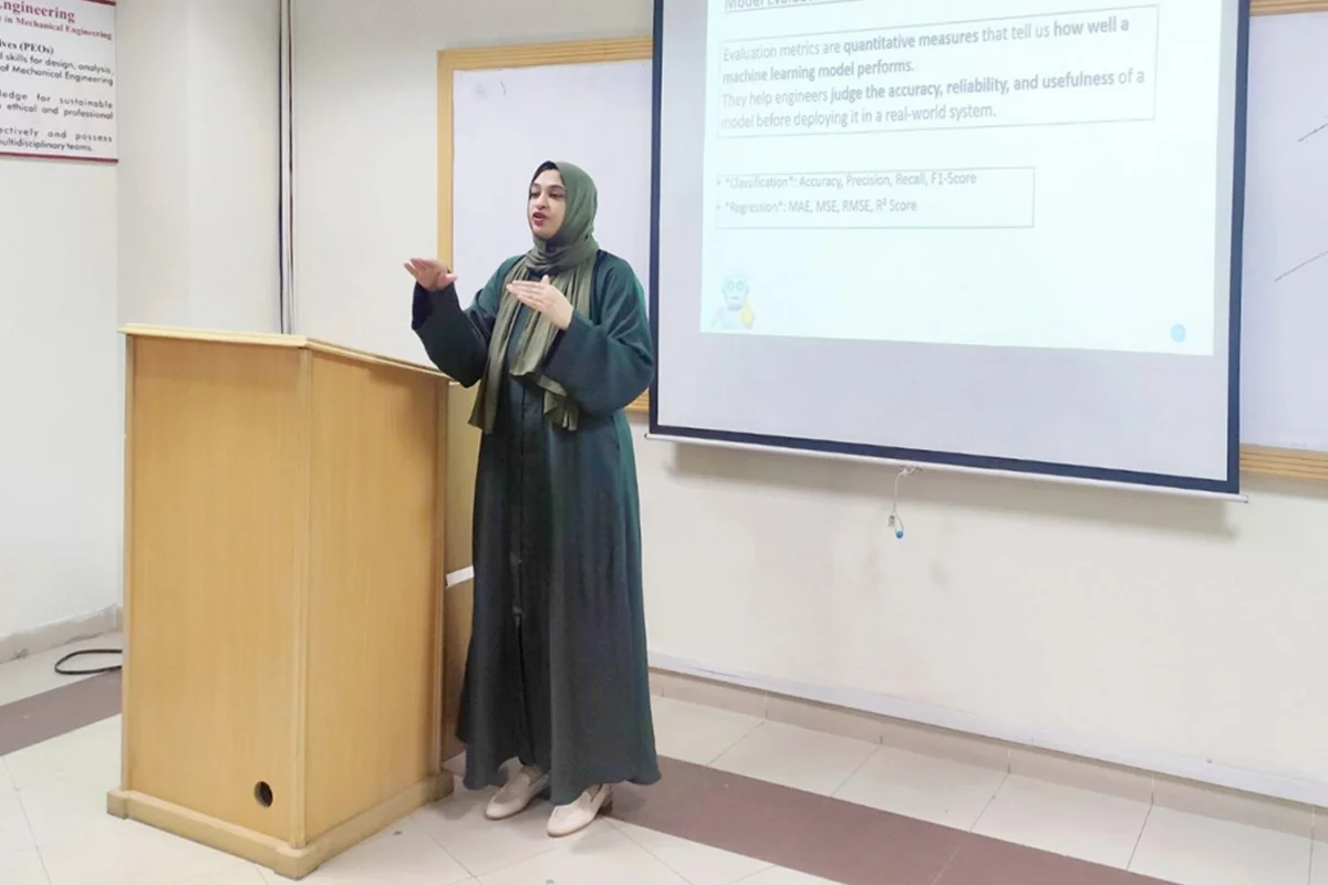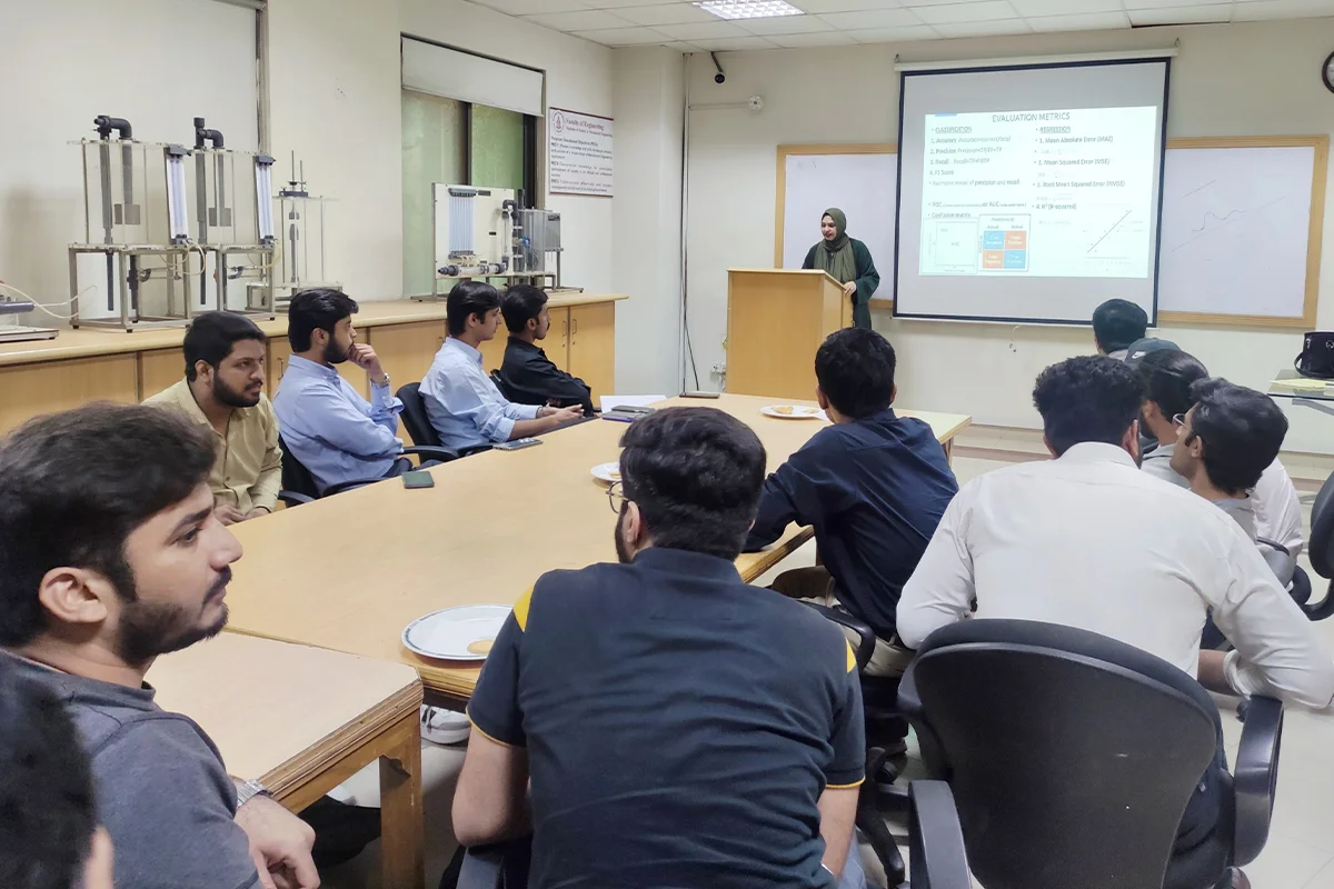 Department of Mechanical Engineering at the University of Central Punjab organized an engaging seminar on “Essentials of AI and Machine Learning for Engineers,” conducted by Dr. Sadaf Zeeshan. The session provided participants with a foundational understanding of AI and ML concepts, tools, and techniques used in engineering applications. Highlighting how artificial intelligence is transforming modern engineering through data-driven and intelligent solutions, the seminar received an enthusiastic response from students and concluded with a certificate distribution ceremony.