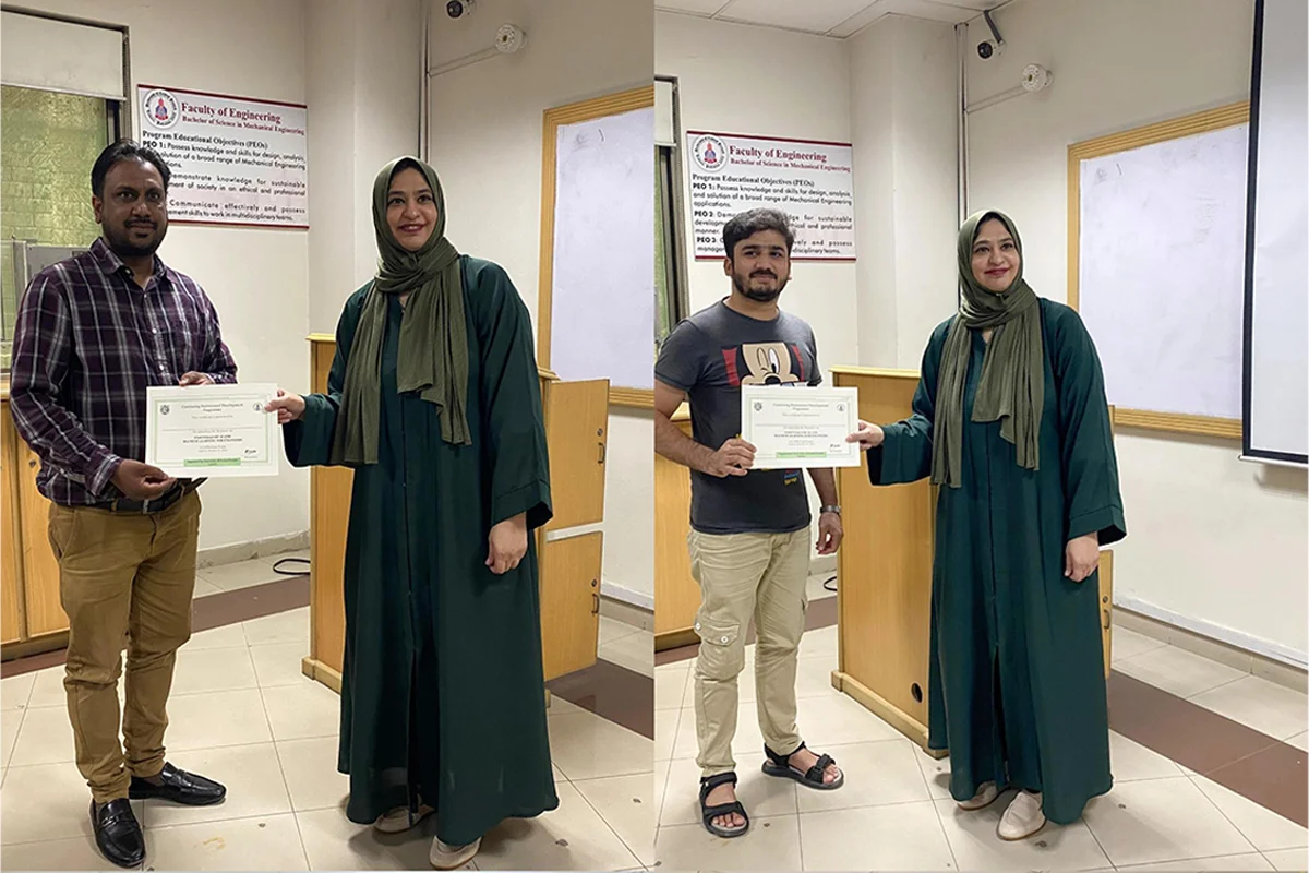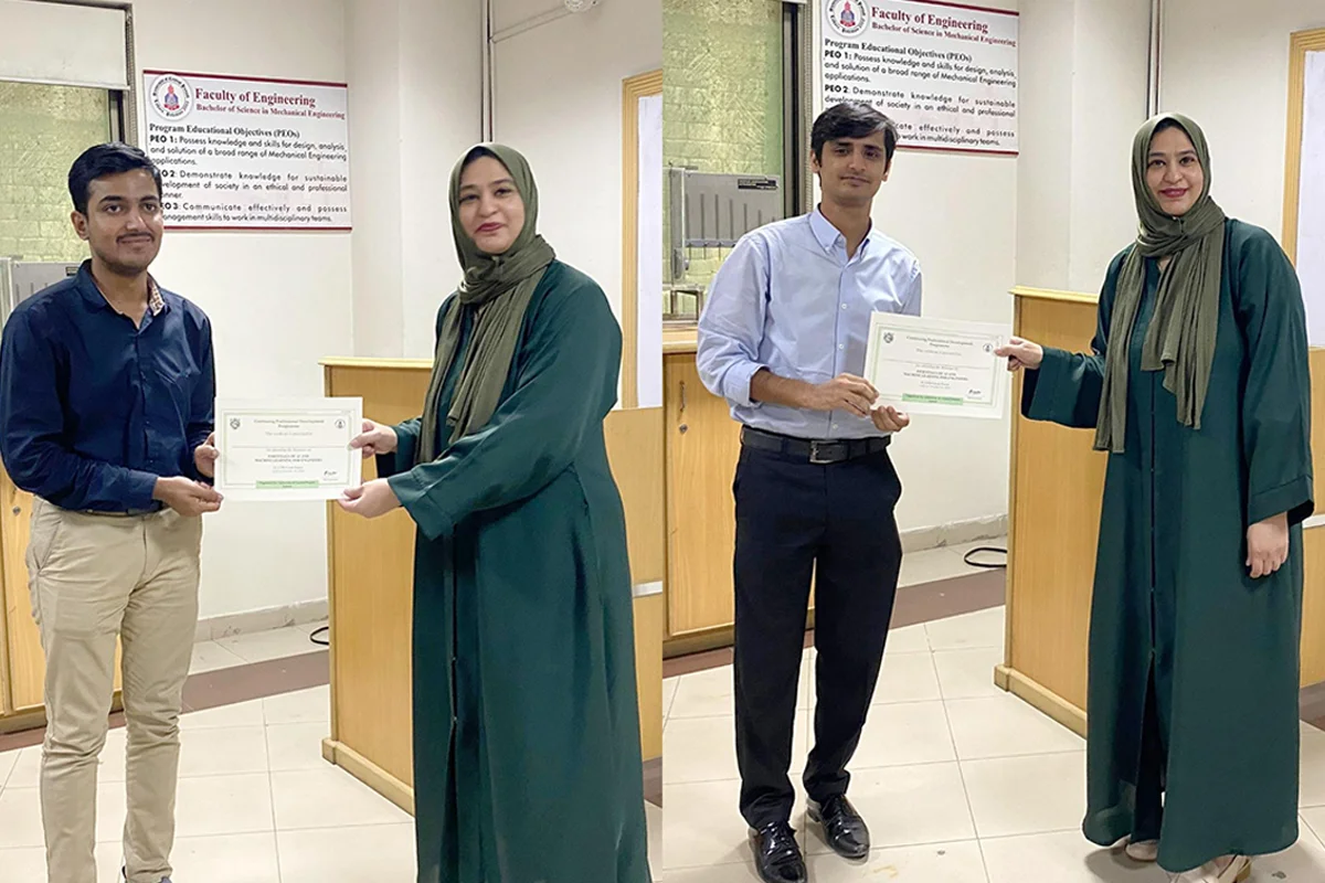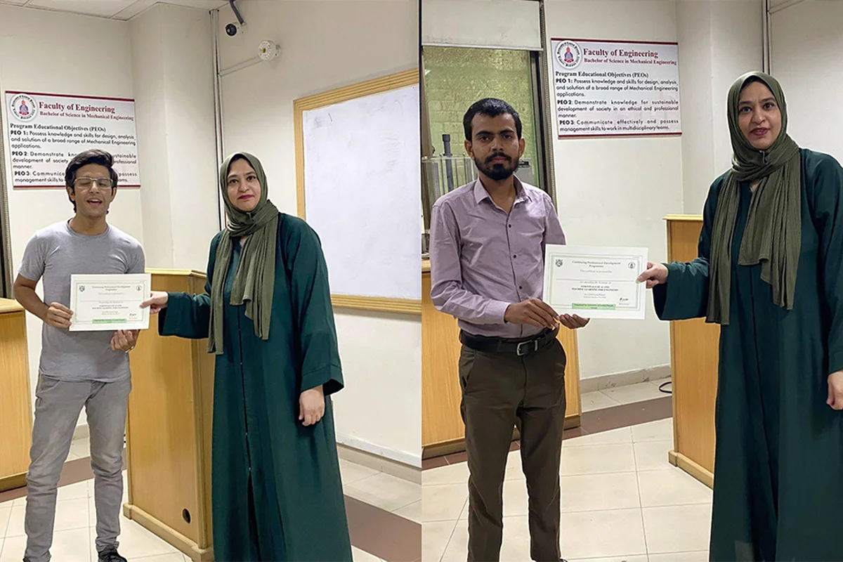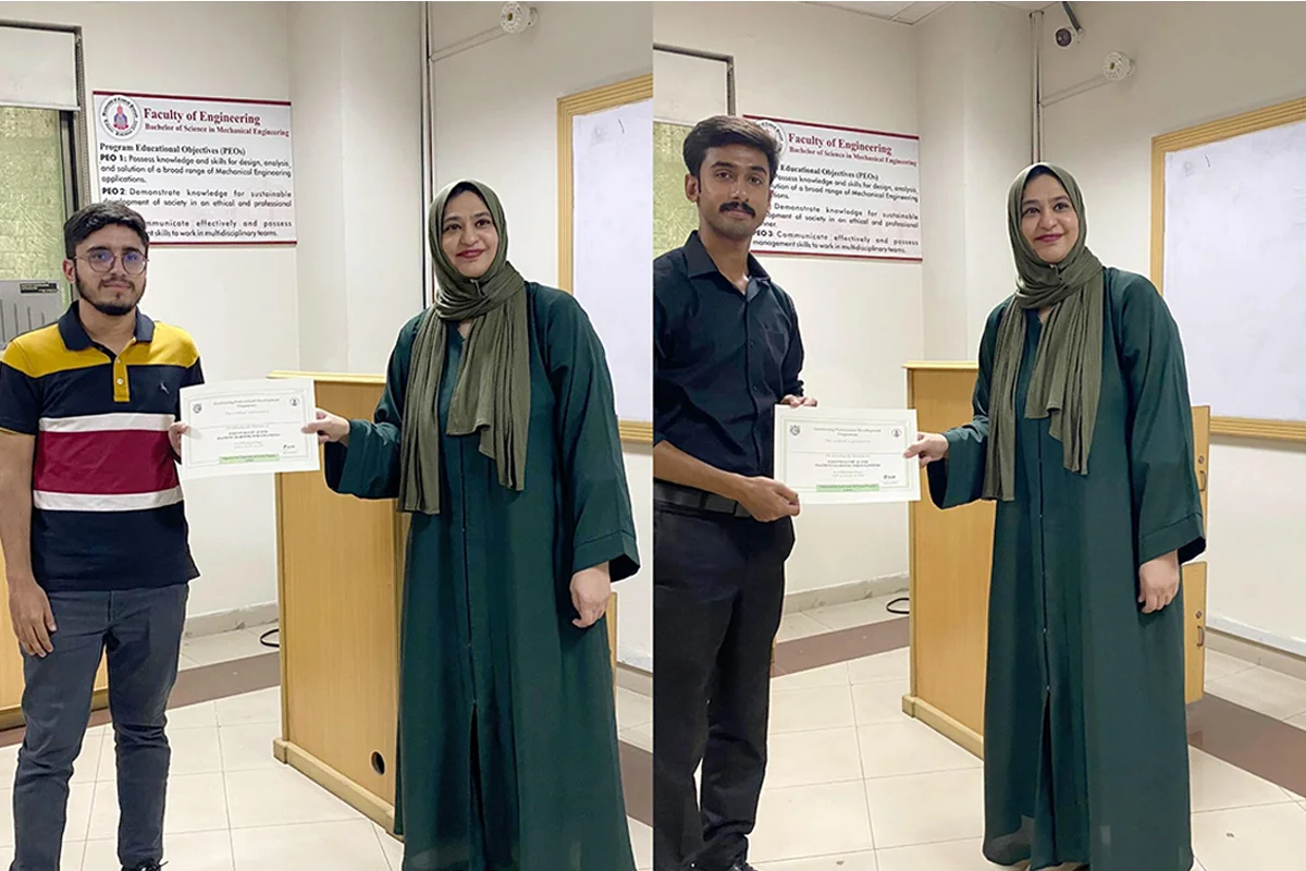 Department of Mechanical Engineering at the University of Central Punjab organized an engaging seminar on “Essentials of AI and Machine Learning for Engineers,” conducted by Dr. Sadaf Zeeshan. The session provided participants with a foundational understanding of AI and ML concepts, tools, and techniques used in engineering applications. Highlighting how artificial intelligence is transforming modern engineering through data-driven and intelligent solutions, the seminar received an enthusiastic response from students and concluded with a certificate distribution ceremony.