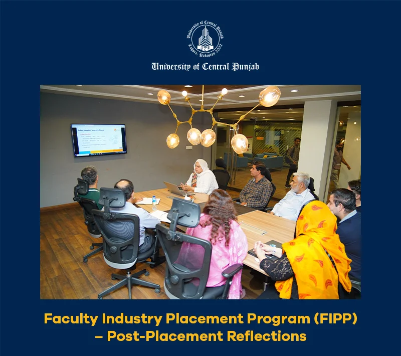 Faculty Industry Placement Program (FIPP) at UCP continues to strengthen the bridge between academia and industry. Featured presentations from five faculty members who shared their valuable industry experiences. Dr. Kanza Aziz Awan (FOST) completed her placement at Six-B Food Industries, gaining expertise in quality control, product formulation, and food safety compliance. Ms. Mariyam Idrees (FMMC) and Ms. Sara Shah (FMMC) explored branding, creative strategy, and media planning during their placements at Creative Junction and Marshmallow Advertising, respectively. Ms. Yakhshi Saleem (FMMC) and Mr. Hamza Ayub (FMMC) joined Express News, where they gained practical exposure to newsroom operations, broadcast systems, and 3D visualization tools. These placements have proven transformative, enabling faculty to integrate industry insights into their teaching, promote collaborative initiatives, and enrich the academic experience for students at UCP.