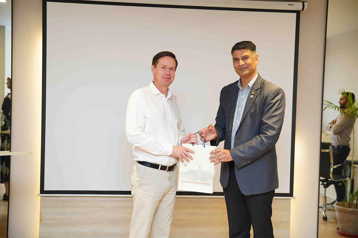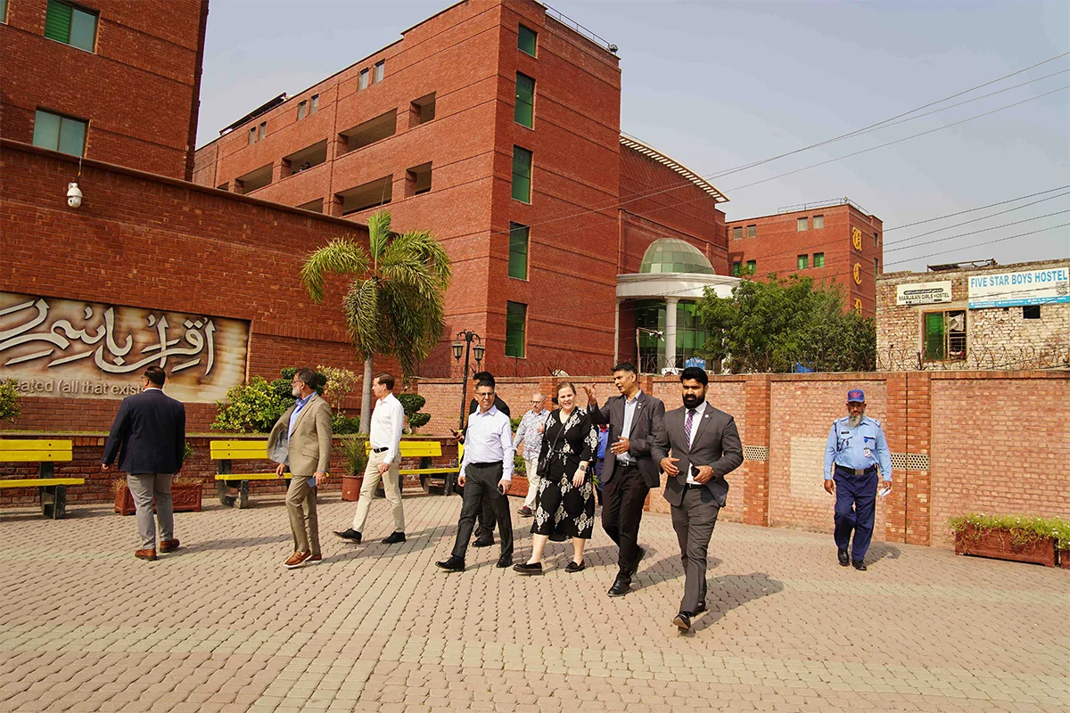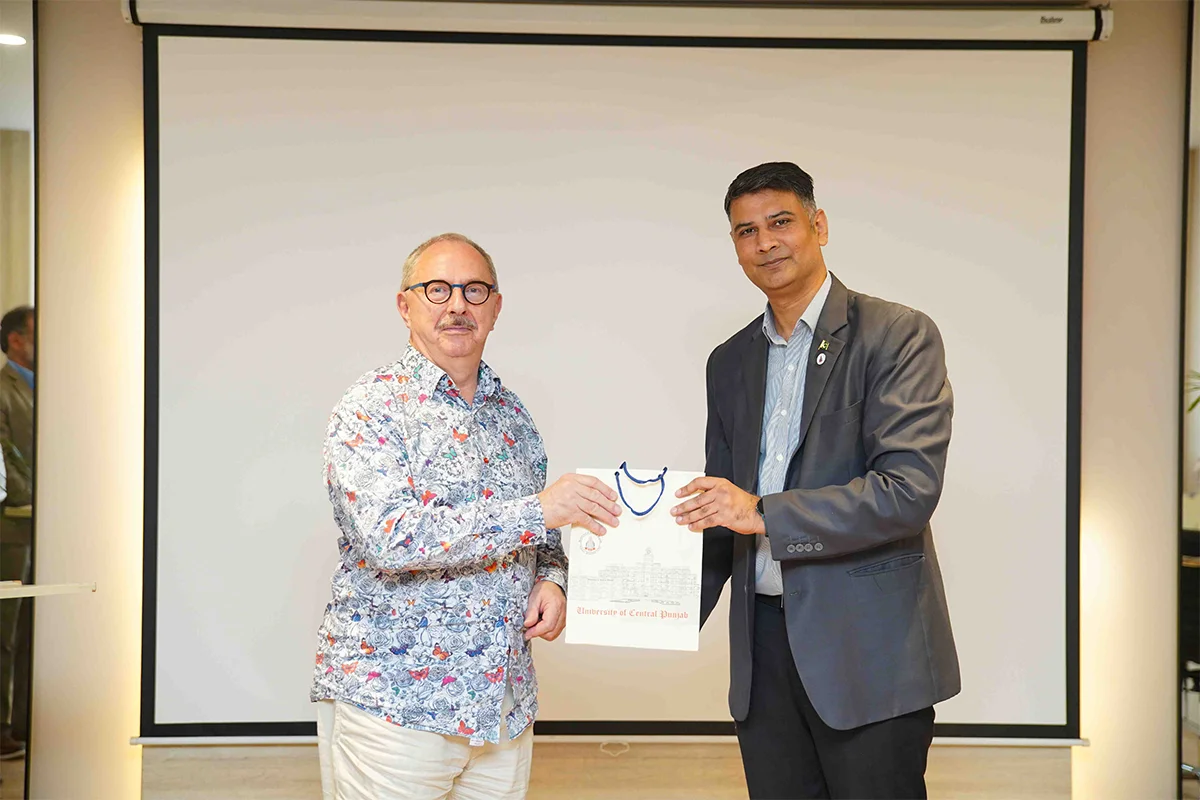 Administration Department organized a visit of a distinguished delegation from the Punjab Group, comprising officials from Step Schools and academic representatives from Finland. The delegation was warmly received by the UCP International Hub Office, which delivered an engaging presentation highlighting UCP’s infrastructure, diverse academic programs, and international initiatives. The delegates showed great interest in the university’s experiential learning facilities and higher education collaborations, expressing intent to explore future partnerships with UCP. Following the meeting, the delegation was given a guided campus tour, where they visited various stalls set up by students from the Department of Food Science and Technology. The international guests interacted with students, appreciating their creativity, academic rigor, and innovative approaches to learning