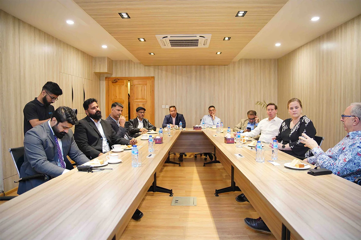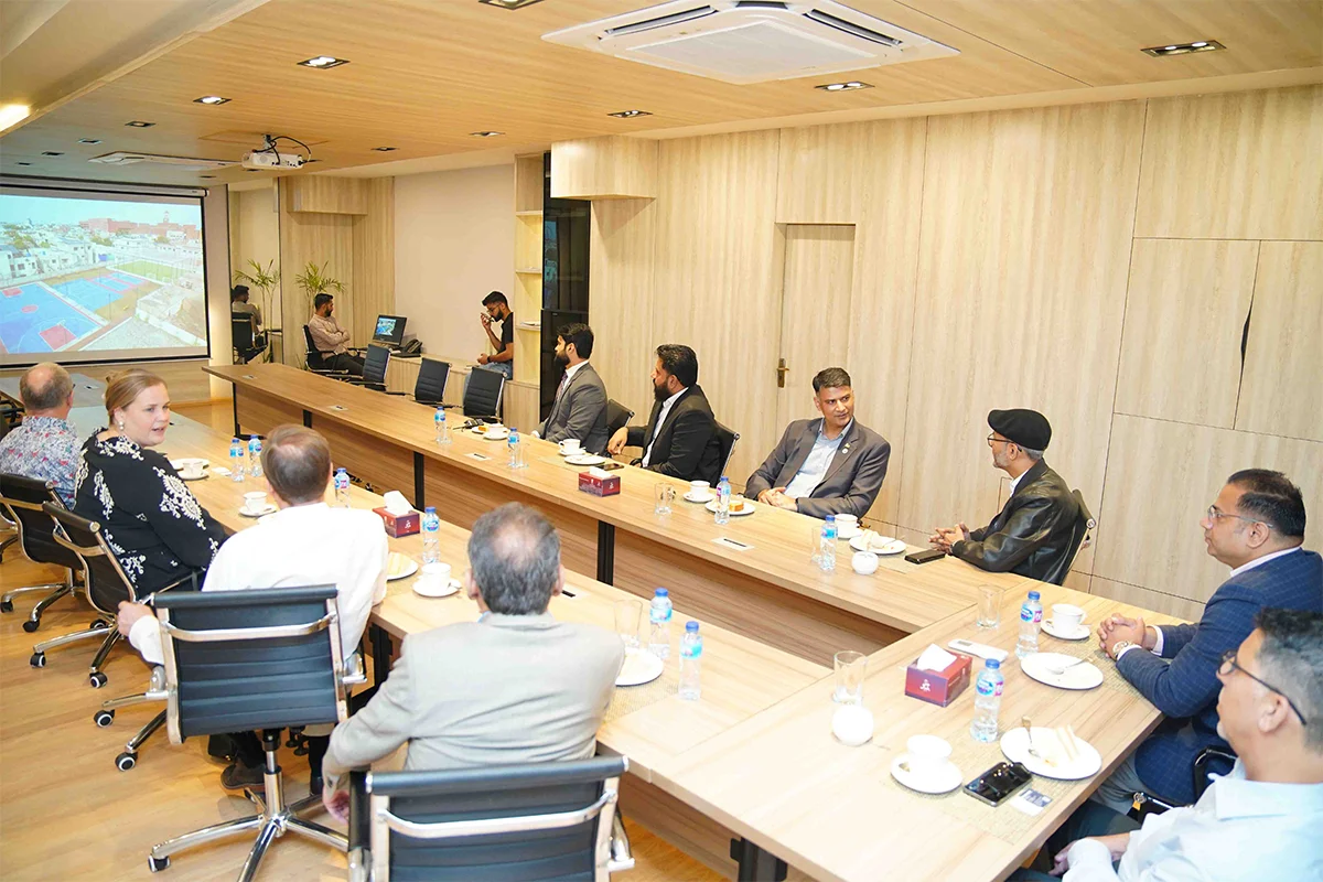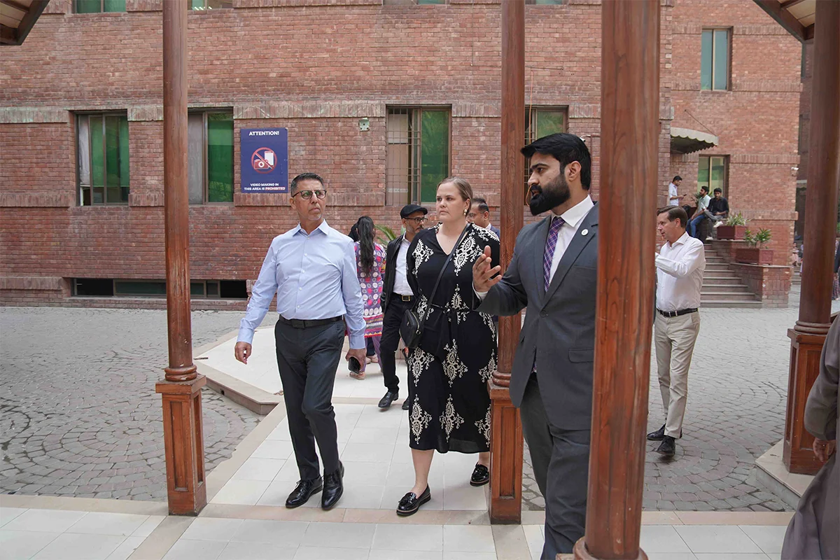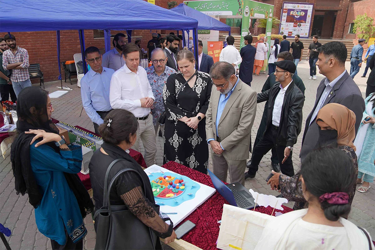 Administration Department organized a visit of a distinguished delegation from the Punjab Group, comprising officials from Step Schools and academic representatives from Finland. The delegation was warmly received by the UCP International Hub Office, which delivered an engaging presentation highlighting UCP’s infrastructure, diverse academic programs, and international initiatives. The delegates showed great interest in the university’s experiential learning facilities and higher education collaborations, expressing intent to explore future partnerships with UCP. Following the meeting, the delegation was given a guided campus tour, where they visited various stalls set up by students from the Department of Food Science and Technology. The international guests interacted with students, appreciating their creativity, academic rigor, and innovative approaches to learning