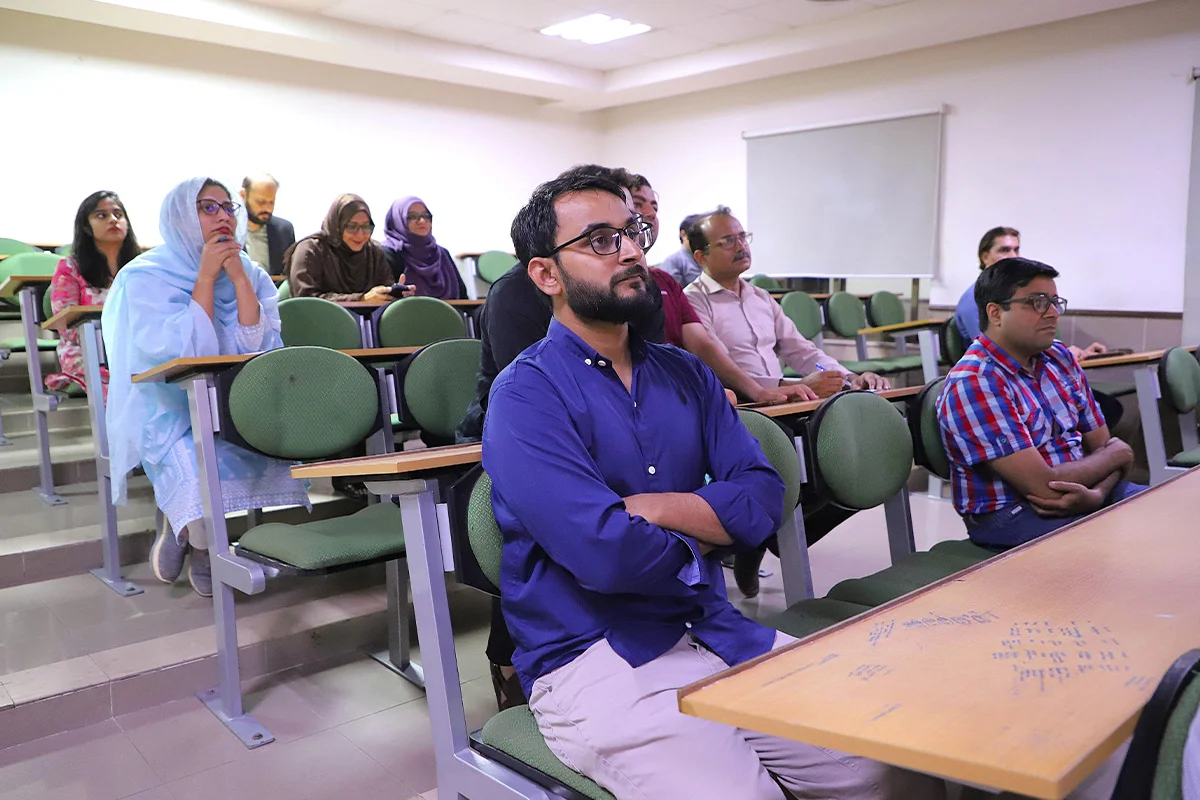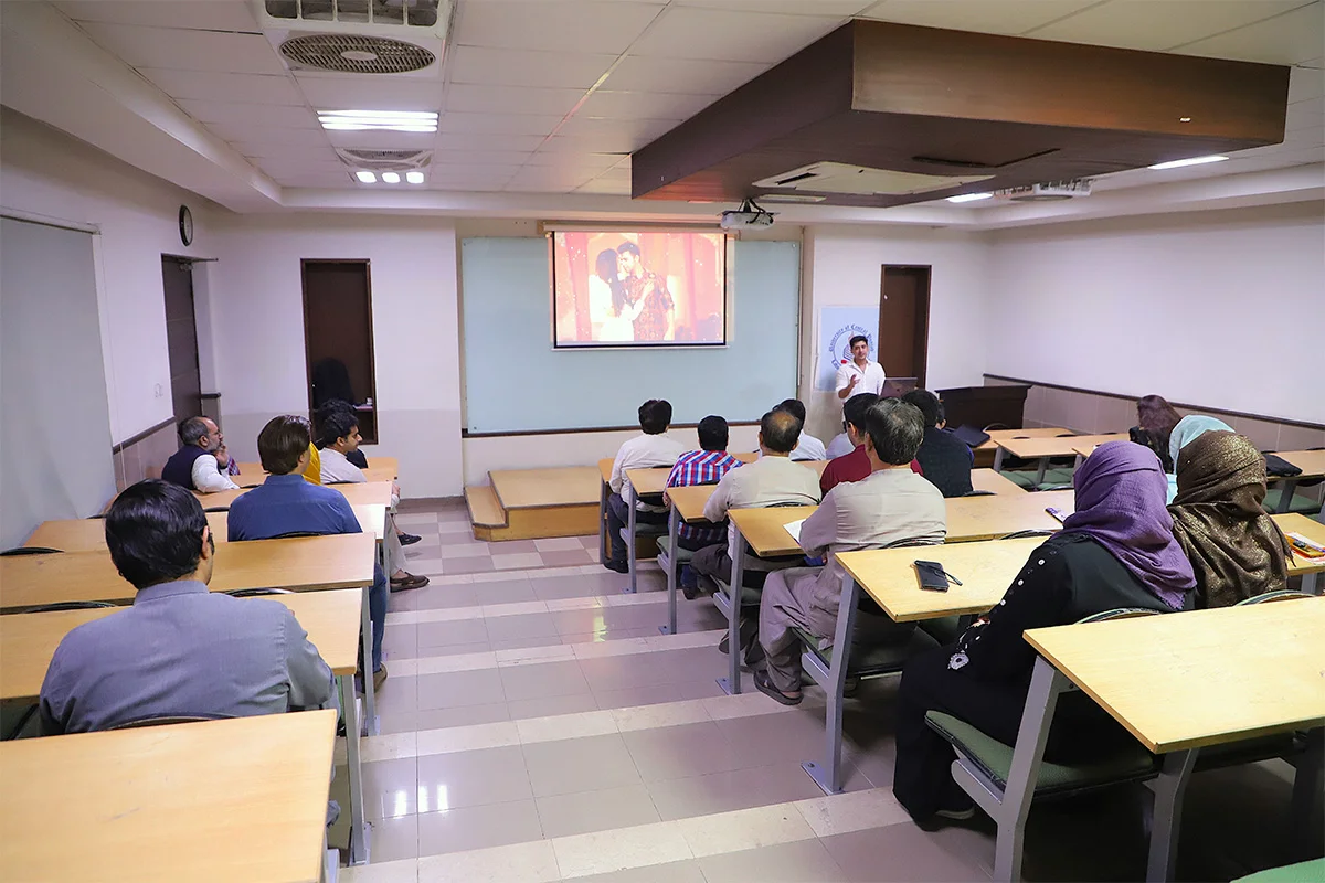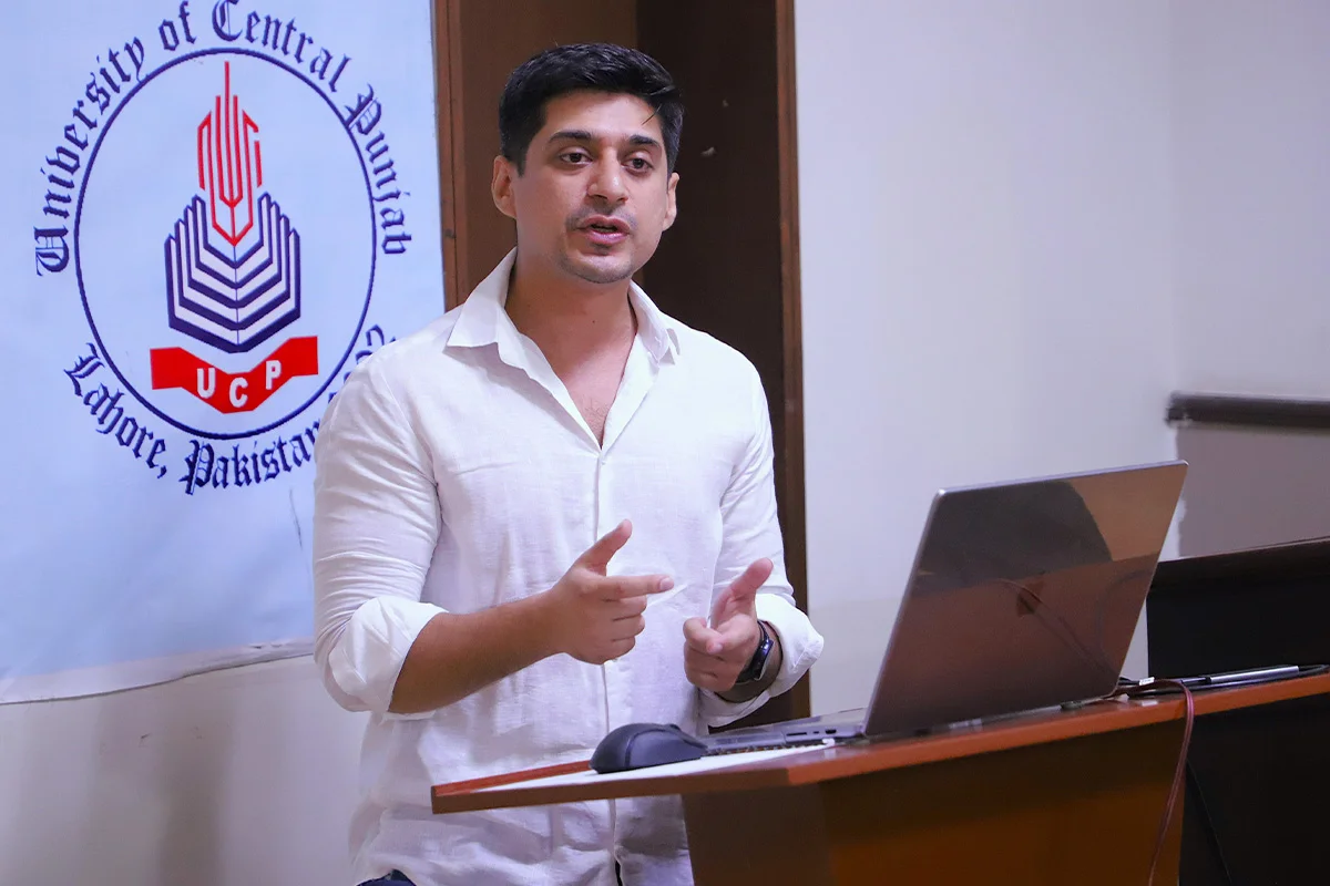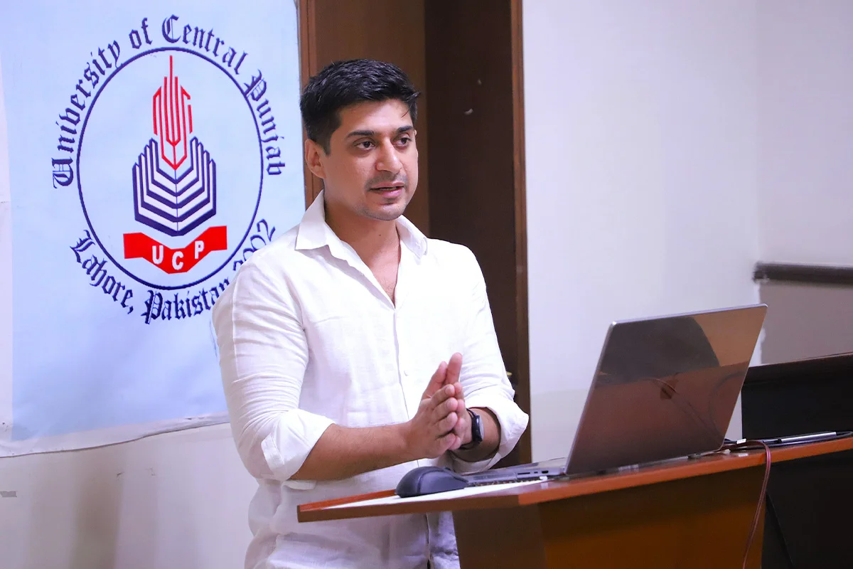Faculty of Media & Mass Communication organized a capacity-building workshop, for the faculty and students of MS (Film & Digital Media). The session featured renowned director and cinematographer Mr. Humza Yousaf, who shared his expertise on crafting compelling visual narratives, achieving high production quality, and mastering the technical aspects of filming and equipment handling. The interactive workshop provided participants with practical insights into the creative and technical dimensions of filmmaking, fostering a deeper understanding of industry practices. At the conclusion of the session, Prof. Dr. Fawad Baig, Dean FMMC, presented a UCP souvenir to Mr. Humza Yousaf as a token of appreciation for his valuable contribution.