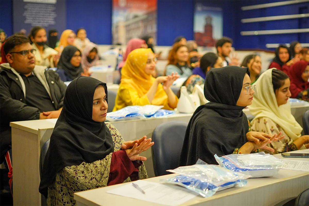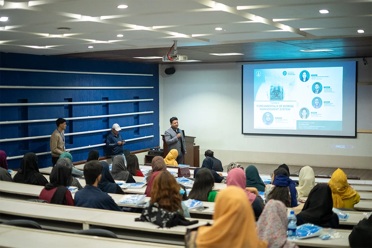 Department of Microbiology, conducted a hands-on laboratory session under the Fundamentals of Biorisk Management System, focusing on safe laboratory practices, risk assessment, and essential biosafety procedures. Participants examined real-time lab hazards, safety controls, and practical measures to promote responsible scientific conduct. The session featured Dr. Samreen Sarwar, Technical Advisor at Health Security Partners, USA, whose insights added valuable perspective. Special acknowledgment goes to Dr. Madiha Khan and Dr. Samman Ikram for organizing the workshop and contributing to its successful execution.
