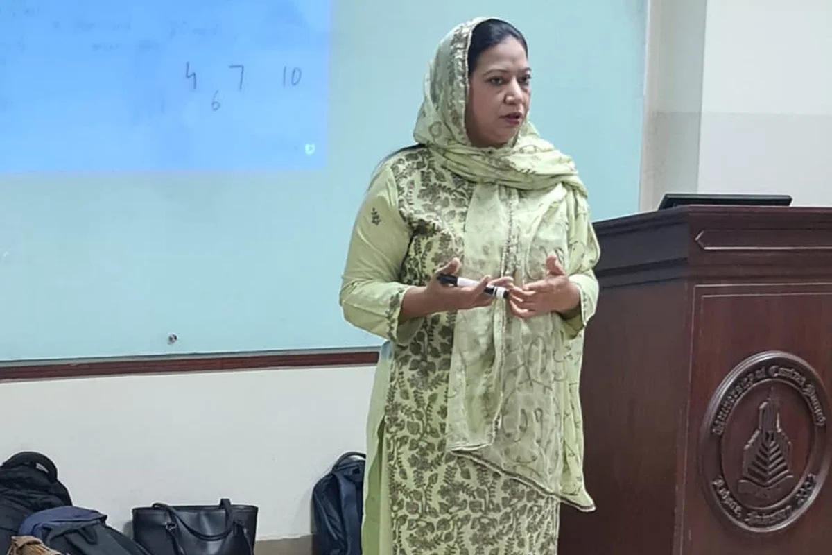 Department of Basic and Applied Chemistry continued its LabXpert 2025: Hands-on Training and Skill Development in Laboratory Instrumentation & Practices with the second session on pH Meter and Conductometer, conducted by Prof. Dr. Amina Arif. The session focused on instrument calibration using buffer solutions and the measurement of acidity, alkalinity, and electrical conductivity of solutions. Participants gained valuable hands-on experience in accurate calibration techniques, data reliability, and good laboratory practices, strengthening their analytical skills and confidence in handling laboratory instrumentation with precision.