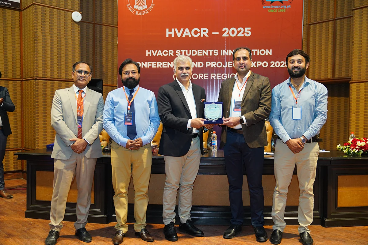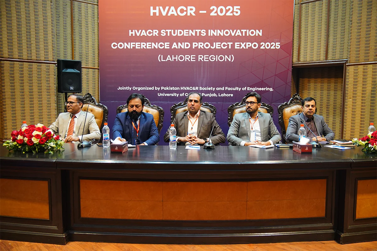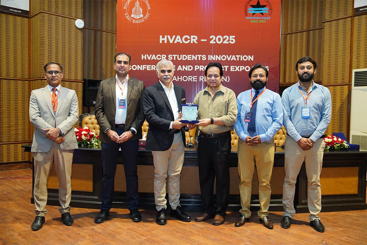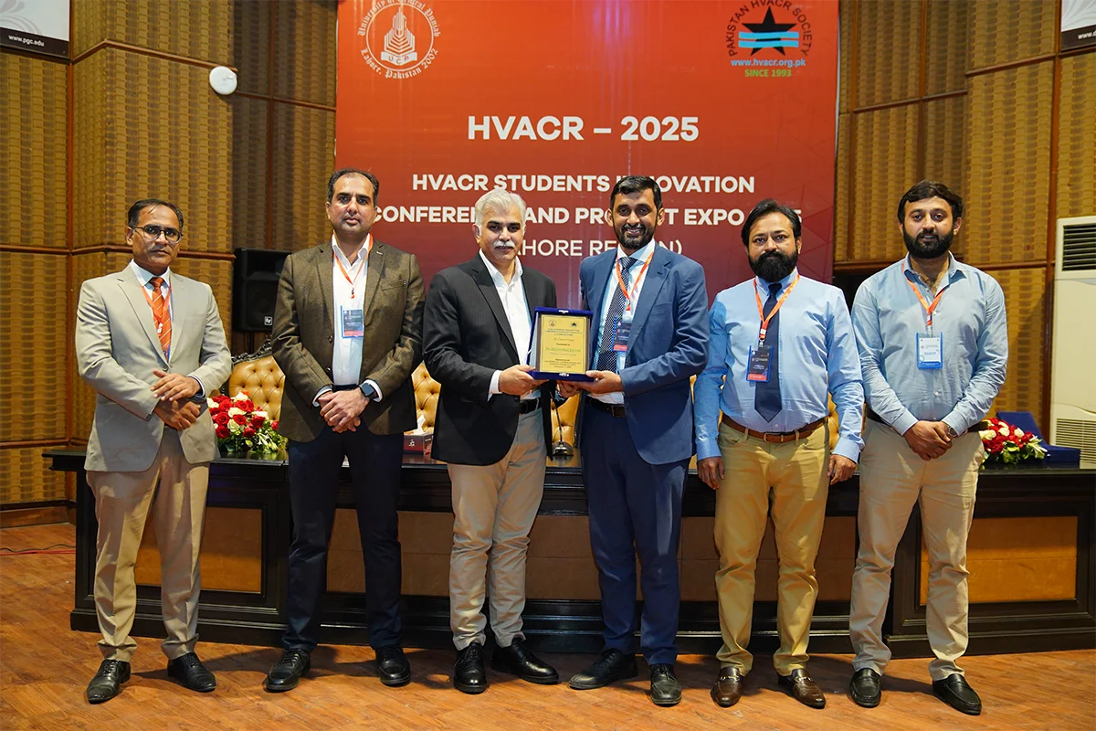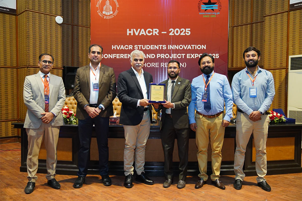 Department of Mechanical Engineering, in collaboration with the Pakistan HVACR Society, hosted the HVACR Students Innovation Conference and Project Expo 2025. Led by Dr. Muhammad Rizwan Shad and Mr. Muhammad Afzaal Malik, the event brought together industry experts and academicians including Mr. Farhan Zafar, Mr. Waqas Ahmed Farooqi, Dr. Haider Latif, Dr. Akhyar Farrukh, Dr. Ali Hussain Kazim, Dr. Muhammad Farhan, Dr. Muhammad Usman, Dr. Tipu Sultan, Dr. Adeel Ikram, Dr. Kamran Asim and Syed Rehan Asharaf to evaluate innovative student projects. The closing ceremony, chaired by Mr. Muhammad Yaqoob, recognized guests and celebrated the winning teams.