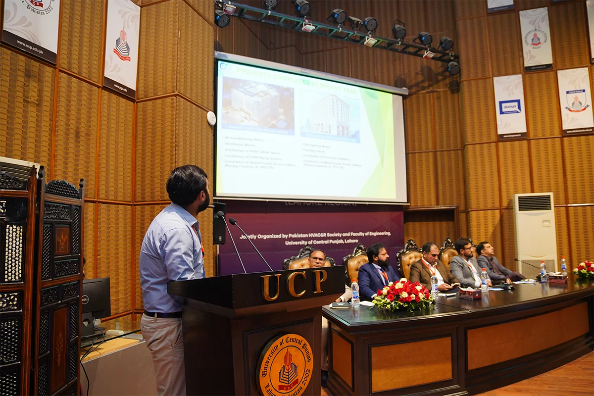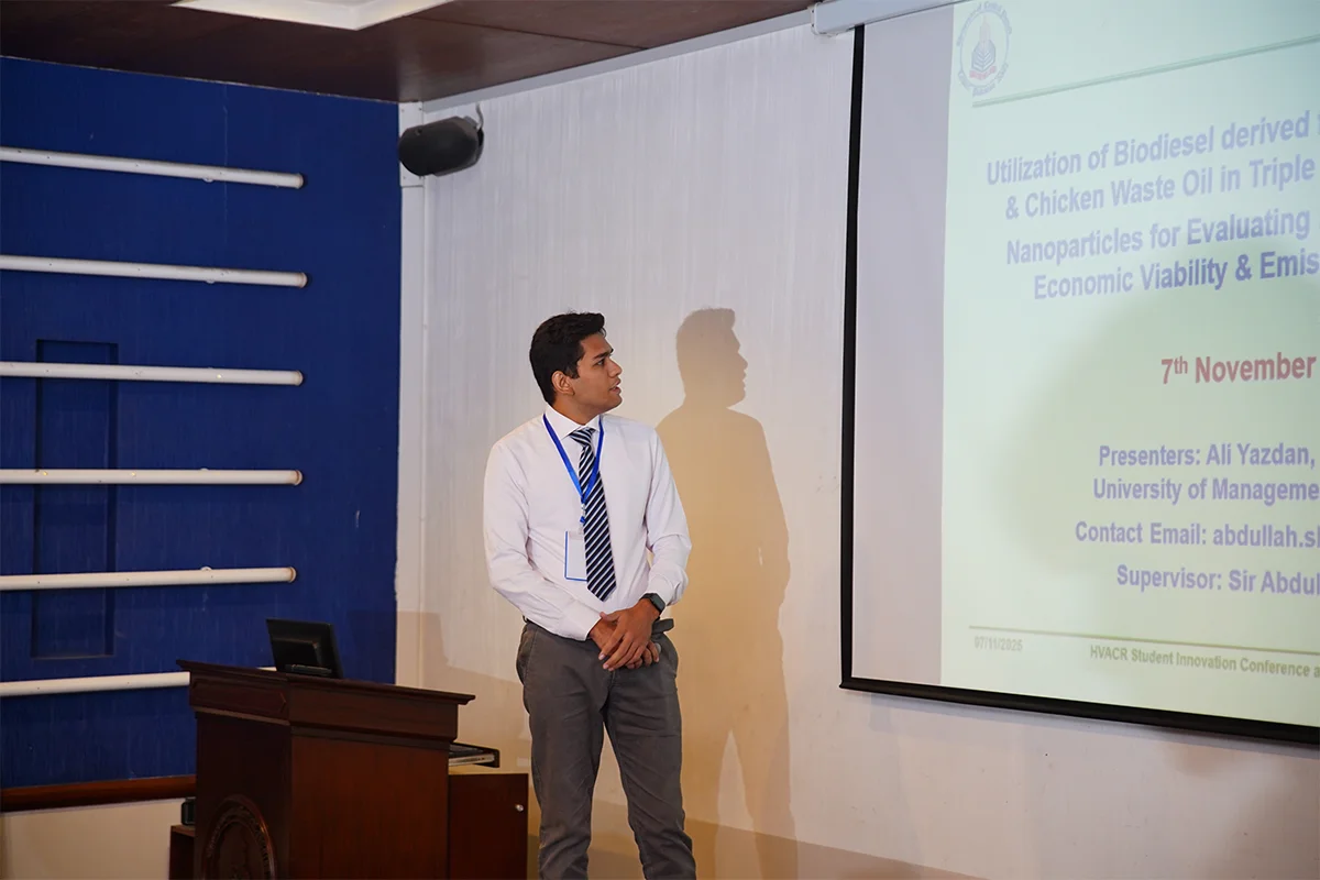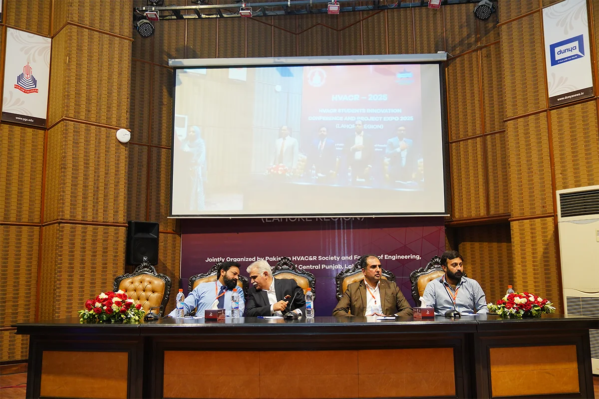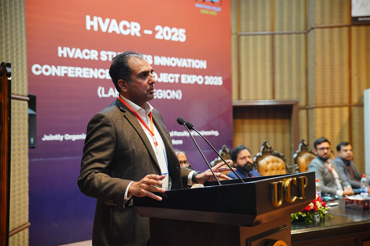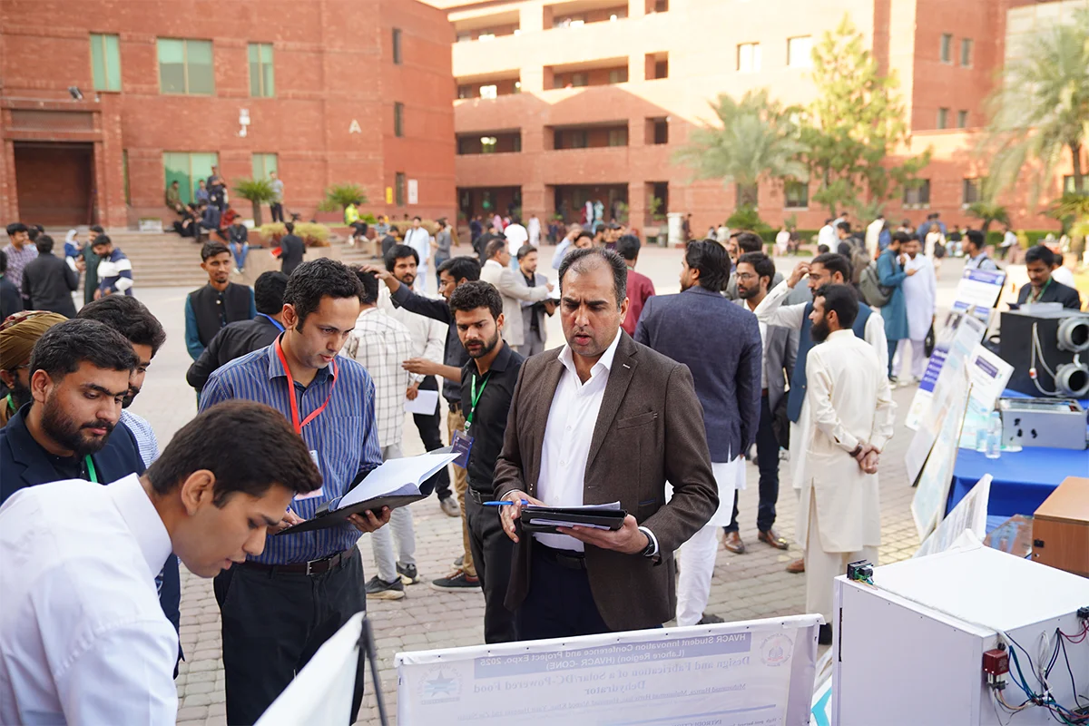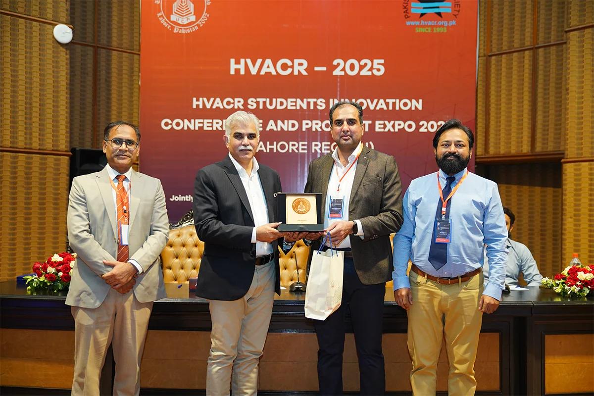 Department of Mechanical Engineering, in collaboration with the Pakistan HVACR Society, hosted the HVACR Students Innovation Conference and Project Expo 2025. Led by Dr. Muhammad Rizwan Shad and Mr. Muhammad Afzaal Malik, the event brought together industry experts and academicians including Mr. Farhan Zafar, Mr. Waqas Ahmed Farooqi, Dr. Haider Latif, Dr. Akhyar Farrukh, Dr. Ali Hussain Kazim, Dr. Muhammad Farhan, Dr. Muhammad Usman, Dr. Tipu Sultan, Dr. Adeel Ikram, Dr. Kamran Asim and Syed Rehan Asharaf to evaluate innovative student projects. The closing ceremony, chaired by Mr. Muhammad Yaqoob, recognized guests and celebrated the winning teams.