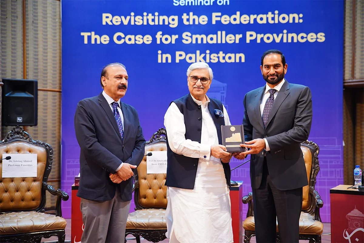 A panel discussion titled “Revisiting the Federation”. The event brought together distinguished experts including Mian Amer Mahmood (Chairman, Punjab Group), Ahmed Nazir Warraich (Independent Legal Services Professional & Academic Expert), Ahmad Bilal Mehboob (President, PILDAT), Dr Ishtiaq Ahmed (Professor Emeritus & Scholar of International Repute) and Prof Khalid Manzoor Butt (Dean, FOHSS & FOLL). Participants explored whether Pakistan’s federation can serve its citizens better by redefining provincial roles, asking fundamental questions of governance, equity and national balance as the political landscape evolves.