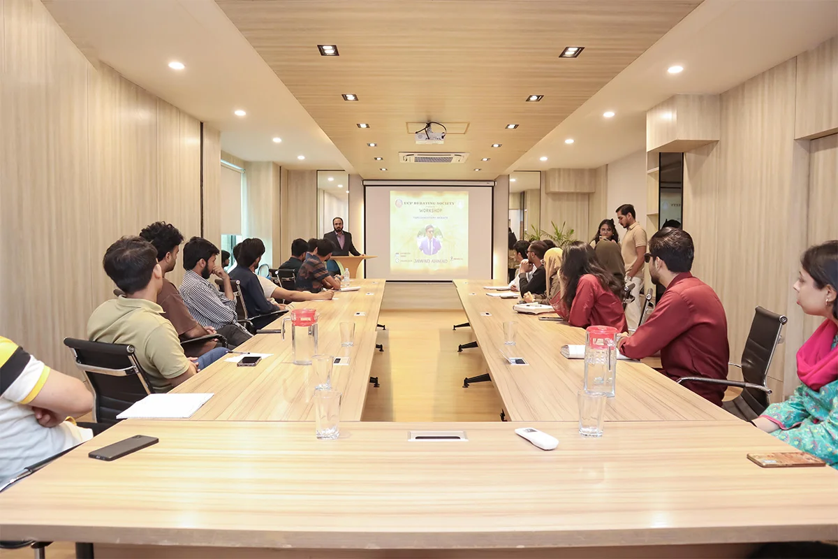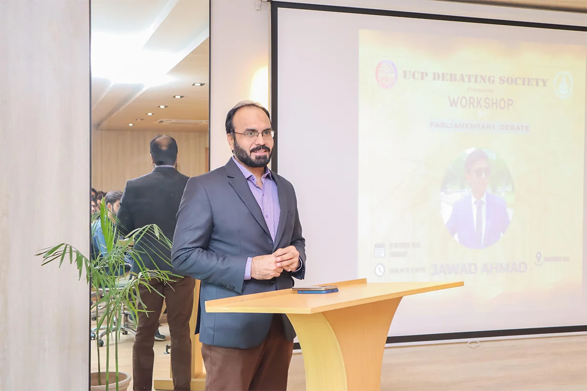 UCP Debating Society successfully organized a Parliamentary Debate Workshop featuring Jawad Ahmed, who shared his expertise on the techniques, strategies, and structure of competitive debating. The session provided aspiring debaters with valuable insights into argumentation, rebuttals, and persuasive communication, empowering them to refine their skills and excel in future competitions.