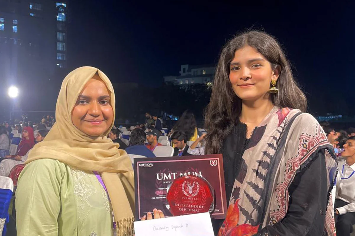 UCP is proud to announce that Jaunita Azhar has been awarded the Outstanding Diplomat Award at UMT (MUN). Her exceptional diplomacy, poise, and communication skills stood out among participants, showcasing the confidence and excellence nurtured at the University of Central Punjab. We’re proud to see her representing UCP with such grace and distinction, bringing honor to the university through her outstanding achievement.
