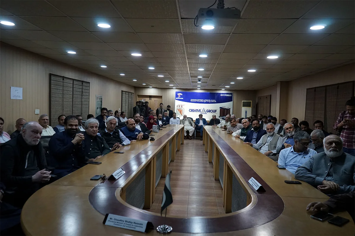 Creative Group of Companies hosted a special session on “Make in Pakistan” to promote innovation and industry–academia collaboration, where CEO Mian Sultan Mahmood recognized the contributions of the University of Central Punjab’s Faculty of Engineering at the R&D facility of SkyPower Pvt. Ltd. Shields of recognition were presented to Mr. Shafi Ul Hassan, an 8th semester Mechanical Engineering student, and Dr. Ali Ahmad, Assistant Professor of Electrical Engineering, for their contributions to product development and research collaboration. The ceremony was attended by distinguished guests including Chairman HEC Dr. Niaz Ahmad Akhtar, Chairman PEC Engr. Waseem Nazir, Punjab Minister for Industries, Commerce & Investment Chaudhry Shafay Hussain, and Major (R) Javed Iqbal, President PIEDMC. From UCP, Pro-Rector Dr. Hammad Naveed and Dean Faculty of Engineering Dr. Rizwan Shad were also present. The collaboration between UCP and Creative Group began in Summer 2025 under the Faculty Industry Partnership Program (FIPP), through which Dr. Ali Ahmad has contributed to the development of several products while engaging students in five final-year projects and multiple internships, strengthening practical learning and industry linkages.