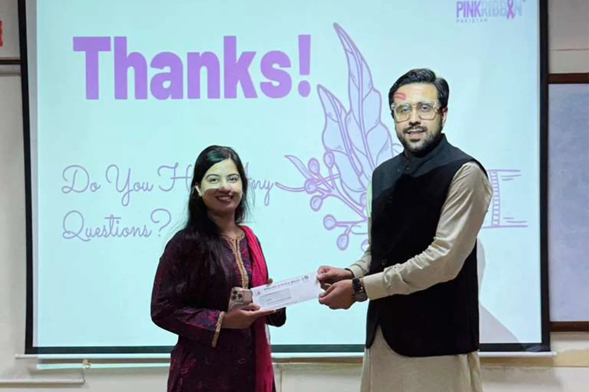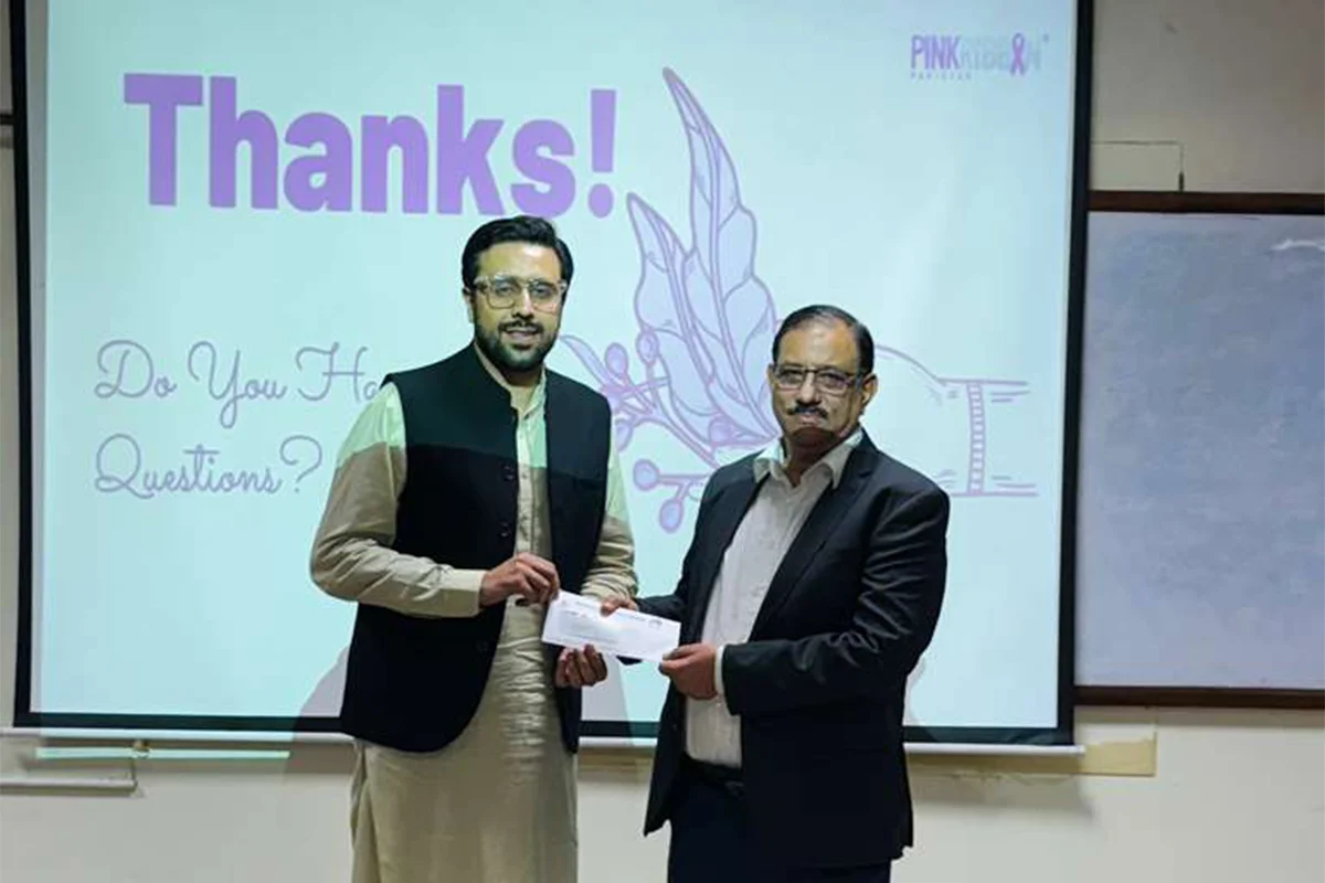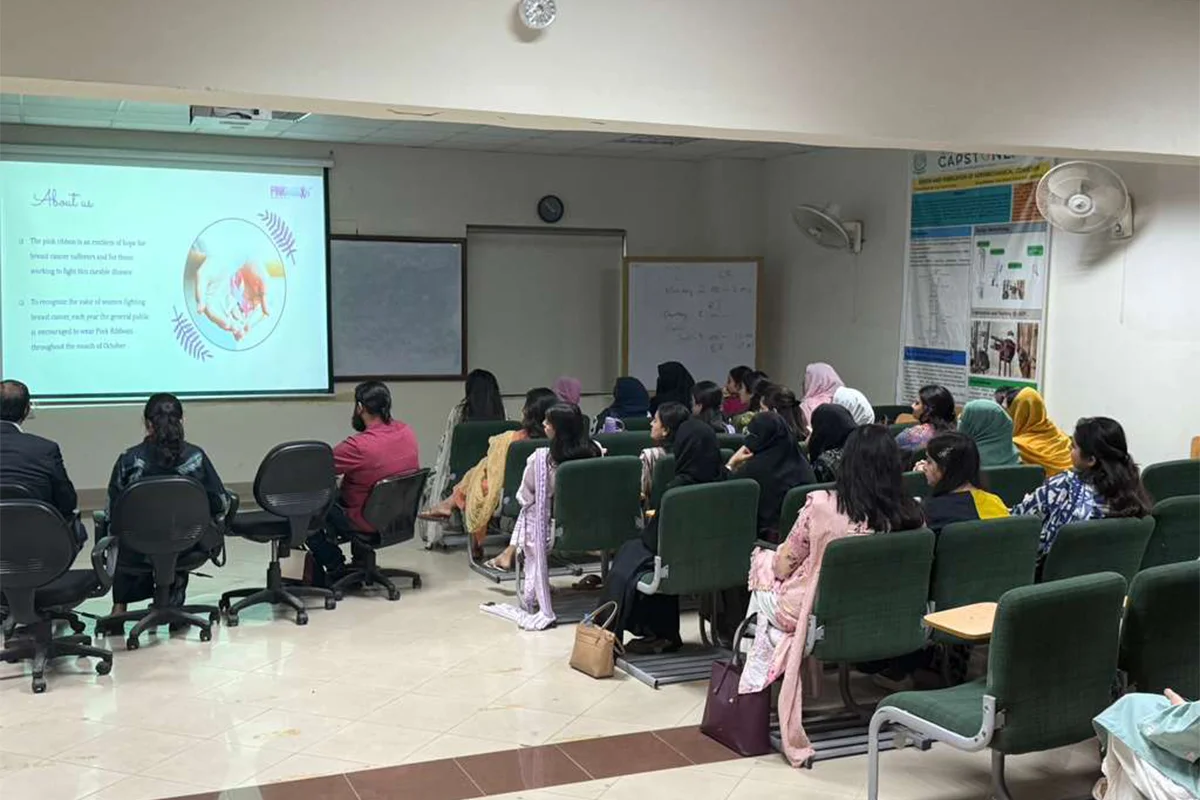 Volunteers in Service (VIS) Department organized an Orientation Session on the Breast Cancer Awareness Drive 2025 in collaboration with Pink Ribbon Pakistan, commemorating Breast Cancer Awareness Month this October. Representatives and doctors from Pink Ribbon conducted an engaging and insightful session, emphasizing the importance of early detection, preventive measures, and community engagement in the fight against breast cancer. The session aimed to equip UCP volunteers with the knowledge and skills to spread awareness in girls’ schools and colleges, fostering education, prevention, and empowerment among young women.