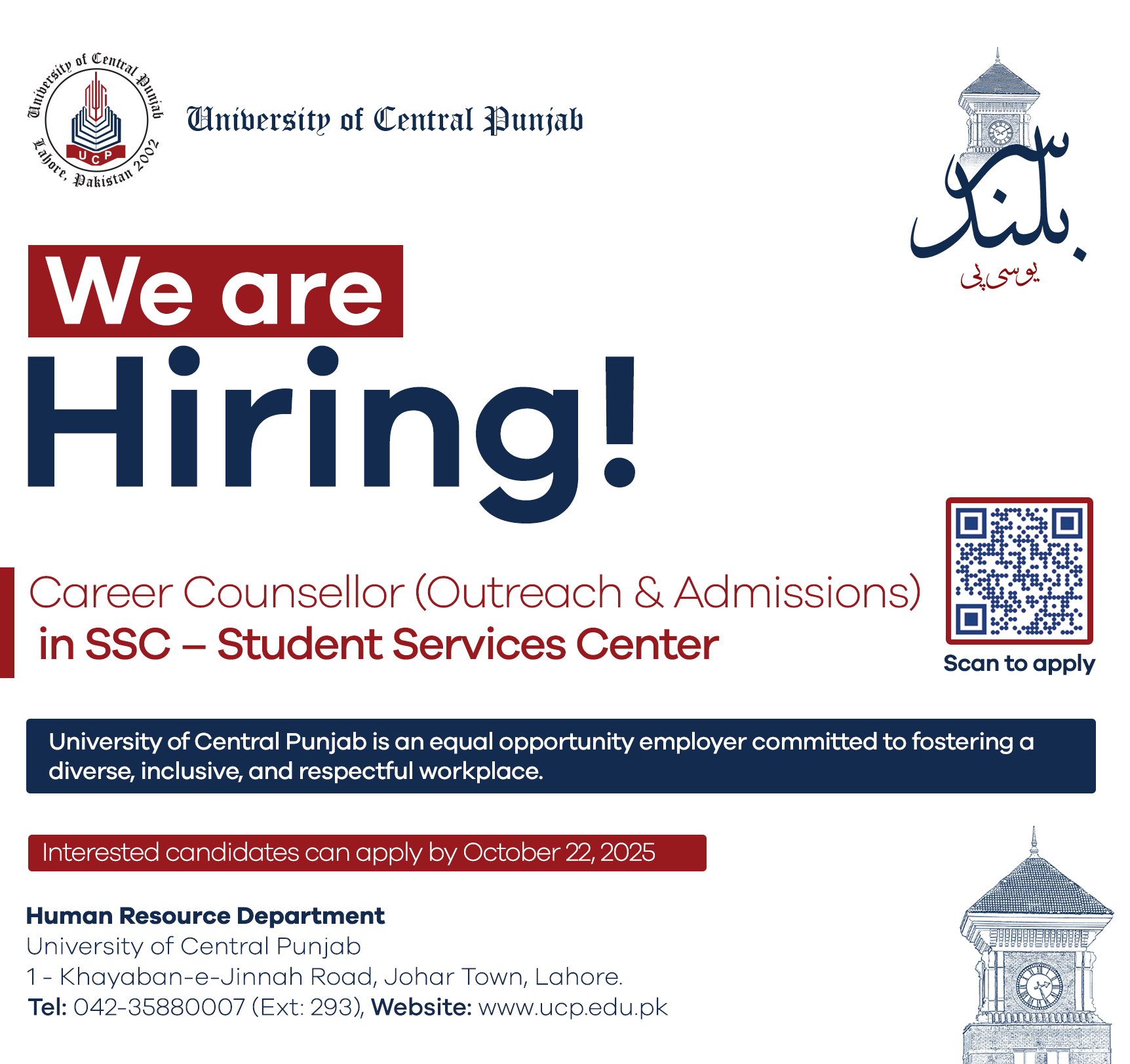 Career Counsellor (Outreach & Admissions) JOB copy - University of Central Punjab